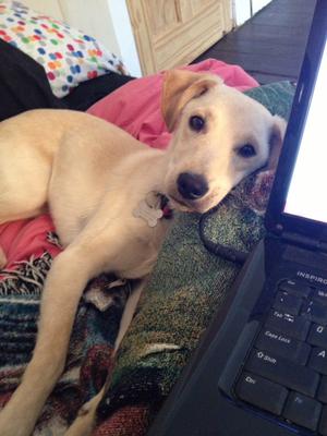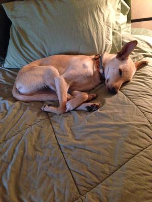 He takes full advantage of his gazelle-like legs whether is is by showing off his speed,or in this case,a little affection. He gives signature "hugs" by standing on his hind legs, placing his front legs on your shoulders and nestling his head into your neck. I can't imagine my life without my roommate and best friend Phin.