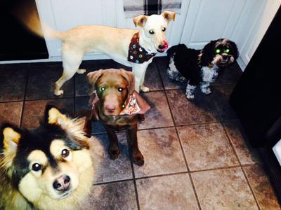 Between my parents and two brothers, holidays and family gatherings bring together 4 dogs (pictured above). Phin is by far the friendliest and gets along with each the best, even Paris, a 9 year old Havanese-Lhasa Apso who doesn't care much for the other two, (6 year old Chloe, a chow husky and 1 year old Bentley, a chocolate lab).
