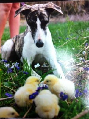 I know whippets have a strong prey drive, but I'm pretty sure she was just curious. She loved to lick and smell the chicks and when they would stand up and flutter their wings she would become startled and very excited.