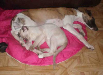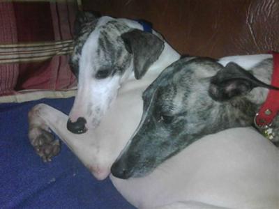 I have uploaded a couple of pictures, some have Riley in them. Wispa is the brindle and white one.
