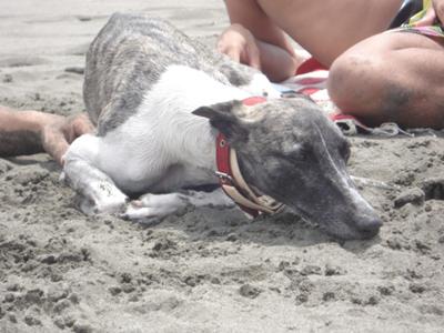 We had a great time: playing with sand, running after the frisbee disk and the other toys, basking in the sun. We are so lucky. See our pictures..
