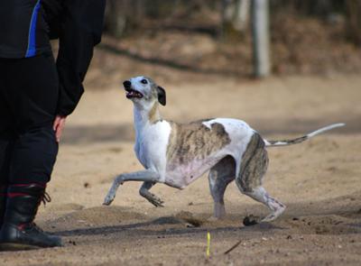 I have a 2 year old whippet: Artie Cosmo Kramer. He's been on this site before, as 'Dog of the Day'.
