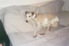 After a hard day of play, he loves to curl up on his bed and fall right to sleep. He is such a deep sleeper that even his brother's occasional bouts of barking don't wake him up.