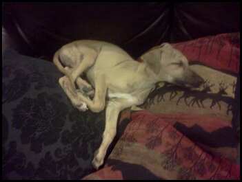 This is our 12 week old Whippet baby relaxing in his (new home-our home).